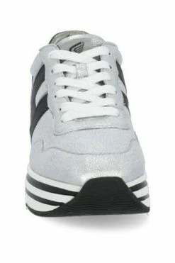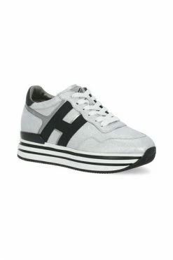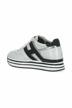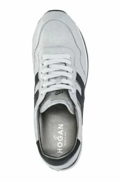 Hogan Sneakers Silver – Silver Hogan lederen sneakers voor vrouw – ronde teen – metalen lederen bovenste eith stoffen inzetstukken – zij contrasterende kleur