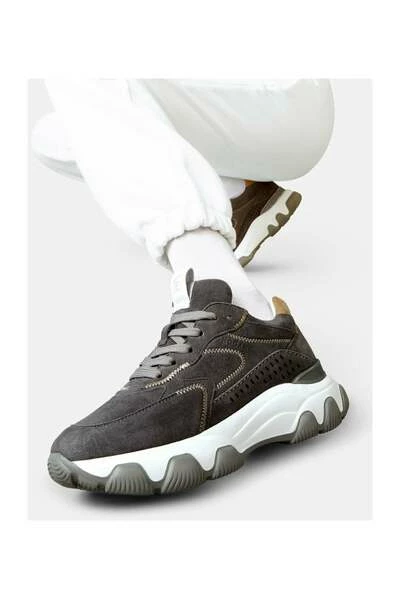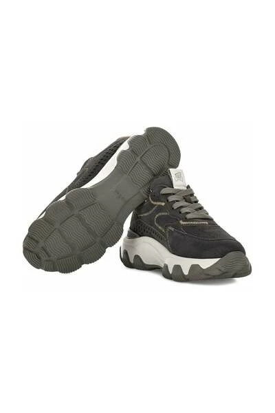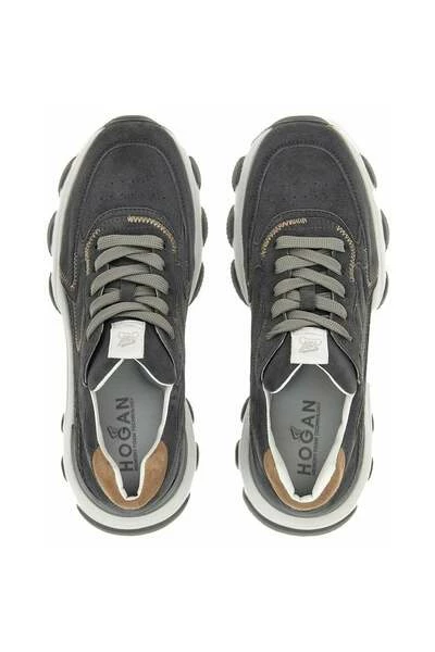 POINT: roundcolor: gray/green inhabitants: lacimaterial: peloSoletta: Memory foam sole: Tronetage: Sneaker Hogan Hyperattiva, thermoformed upper, Hogan logo imprinted on the side, Chunky Extraight sole, side drips, thin -ray strings in: Italy