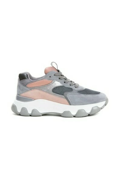 Hogan Sneakers Gray The Hogan Hyperactive Women s Luxury Sneaker vertegenwoordigt een dynamische synthese van hedendaagse inspiratie- en erfgoeddetails. De extralight dikke zool heeft een profiel met vloeistoflijnen die perfect samengaan met die van de bovenkant. Gemaakt van een mix van leer en stof, het heeft het Hogan -logo dat aan de zijkant is gerelateerd en een traagschuimvoetbed. De nieuwe hoofdrolspeler van de stedelijke levensstijl. Sneakers Hogan Hyperactive Woman gemaakt in Italië Upper in suède leer glanzende technische stof inzetstukken details in duikstof-effect stof en metallic lederen zijde hogan logo 8 mm geheugenschuim voetbed voetbed rubberzol indicaties van zorg en onderhoud inbegrepen stofkast
