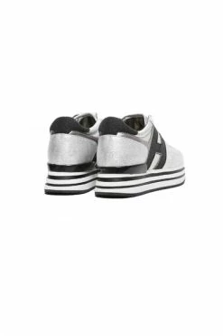 Hogan Midi H222 in zilvergrijs metaalleer met ultra licht licht hebben een Hileral H Pasian benadrukt door een pad, dat beweging geeft naar de lijnen van de bovenste dames sneaker van de vrouwen met een casual glamourgeest met totale lengte 5,5 cm extracteerbare 8 mm gewone/grote fitting Fussbett