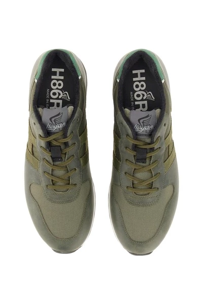 – Rubberen zool: 3 cm- lederen bovenste vlakke veters- Technische stof inzetstukken- Rubberen lederen details- GROSGRAIN SIDE H- 100% leer- gemaakt in Italië