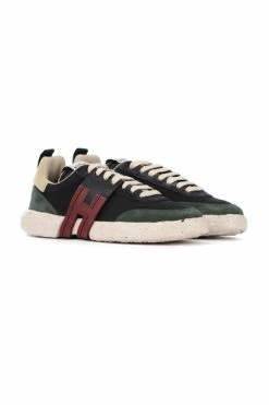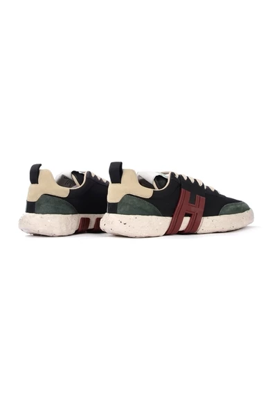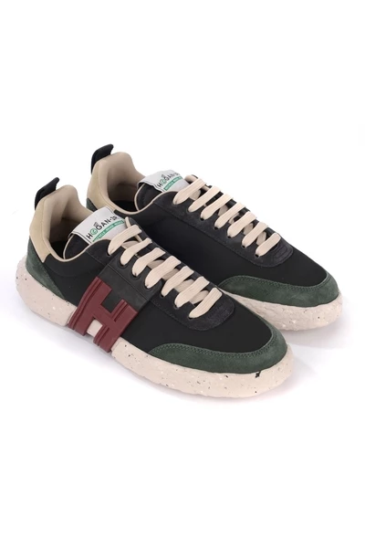 Heren sneaker hogan -3r zwart en groen in stof en suede. Fussbett opgevuld in Airtex 5 mm stof in Eva Eva Everileght Sole 2,8 cm