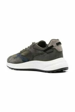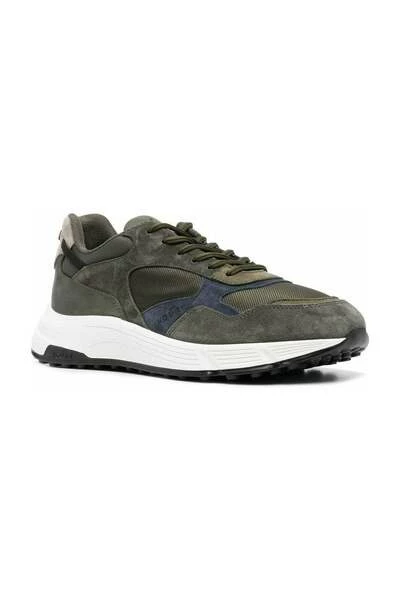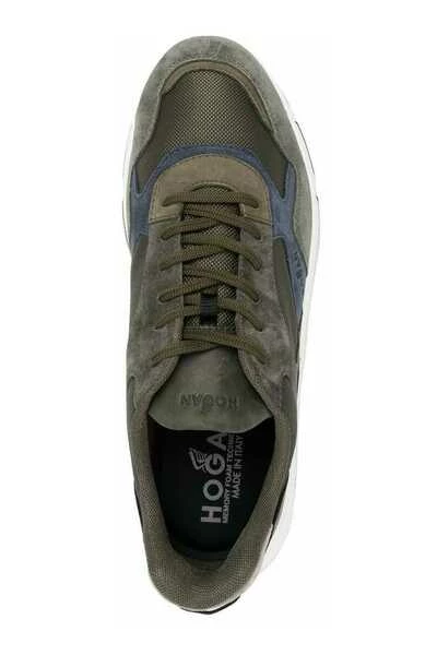Hogan Sneakers Green Hyperlight Low-top sneakers van Hogan met militair groen, kuitleer, contrasterend paneel detail, gaas lambrisering, ronde teen, aan veterbepaling, merkbeleggeling en ribben rubberzol.