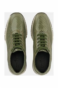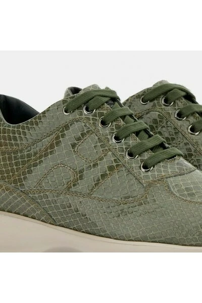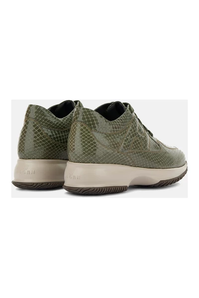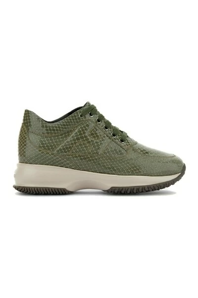HOGAN Green Interactive is een tijdloos icoon dat in 1997 werd gecreëerd en is uitgegroeid tot een puur designaccessoire. Hij wordt seizoen na seizoen opgefrist en is geschikt voor de meest uiteenlopende interpretaties dankzij de mix ; match van verschillende texturen en details. Deze nieuwe versie in leder met reptielprint wordt gekenmerkt door een gewatteerde H aan de zijkant en is perfect voor een casual chique stijl.