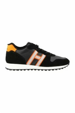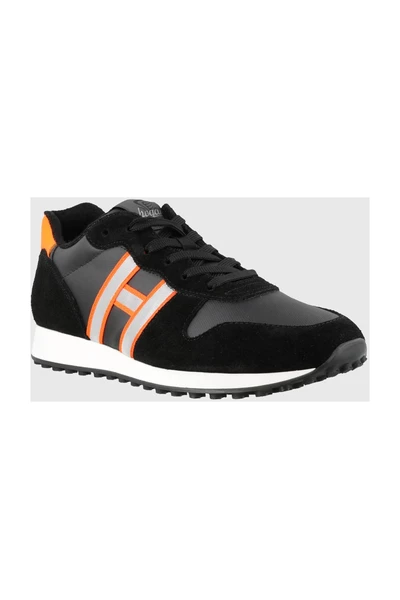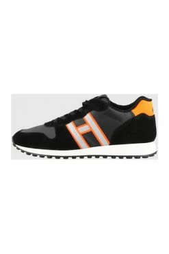 Sneaker Hogan Man H429 Suede en zwarte technische stof met H -facrangent geprofileerde oranje sperone in oranje oranje bosbouw plantaire stof gevoerde stof sten breed/comfortabel gemaakt in Italië