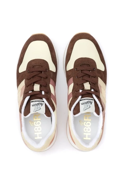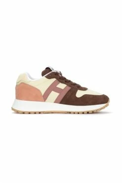 HOGAN H429 sneaker roze en beige in suède en leer met details van Bourgondië. Interne zool in verwijderbare lederen bicolor rubberen zool 3,5 cm