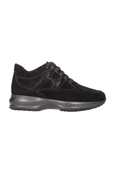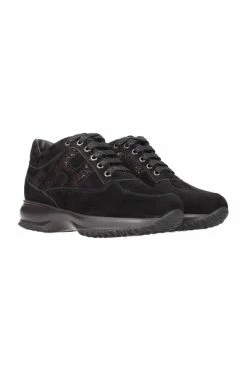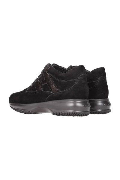 Casual stijl veter Suede kalfslin ronde tip logo toegepast op de tong Hogan zijde Crackle Lamè-effect Laag Top glad lederen interieur afgeronde rubberen rubberen zool ruglip Logo Non-slip bodem