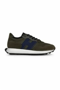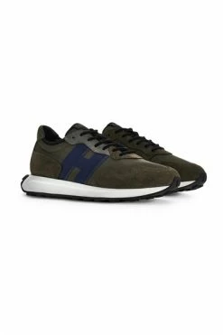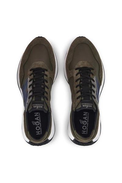 Hogan Green Snekaers Sneakers Hogan H601 moddergroen en blauw kleur bovenwerk in suède lederen inzetstukken in technische stofafsluiting met veters h zijscherm-gedrukte verwijderbare binnenzool in geheugenschuim