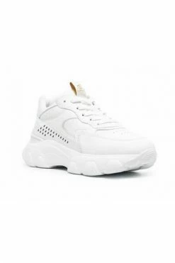 Hyperactieve sneakers. Dikke rubberen zool, perforatiedetail, achterste logo -tong, ronde teen, kant omhoog voorste bevestiging en logo -binnenzool