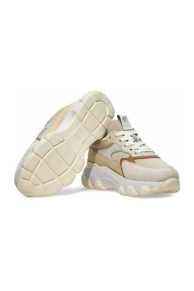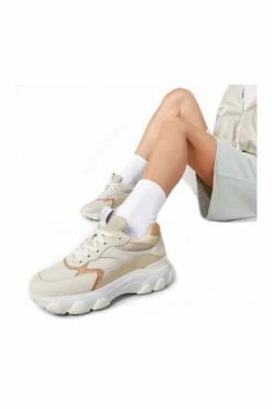 Ronde teen. Veters aan de voorkant. Grove zool.