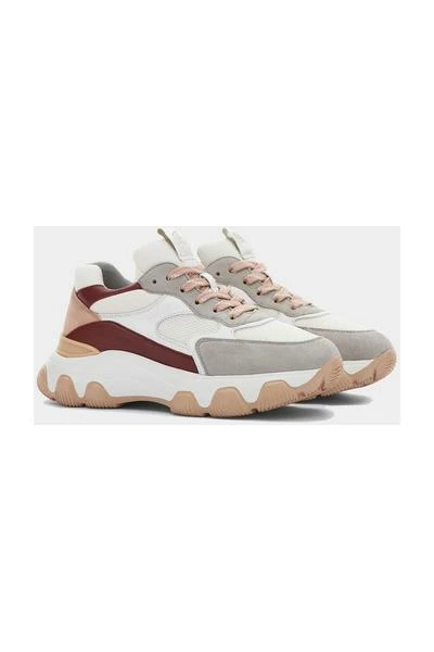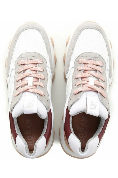 Sneaker Hyperactive kaal wit en bordeaux ondertekend Hogan. De nieuwe luxe Sneaker enige chunky poeder kleur Upper thermogevormde Hogan logo in reliëf Fussbett memory foam Specificaties van het product Platform: 6, 2 cm Materiaal: leer, suède Zool: Rubber Gemaakt in Italië
