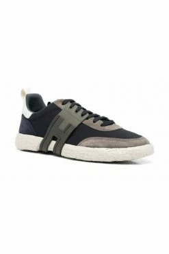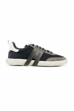 Hogan Sneakers Blue 3R low-top sneakers van Hogan met marineblauw, kaki, grijs, multicolour, kalf suede, paneelontwerp, logo-patch naar de zijkant, contrasterend paneel detail, logo-patch bij de tong, ronde teen, voorkant van de voorkant van de voorkant, vooraan , trek-tab aan de hiel en platte rubberen zool.