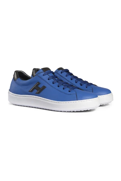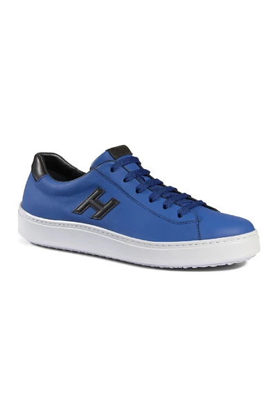 HOGAN H302 Sneakers in leer met blootgestelde stiksel en reliëf van Hogan-monogram aan de zijkant. Casual stijl voor een dynamische uitstraling.