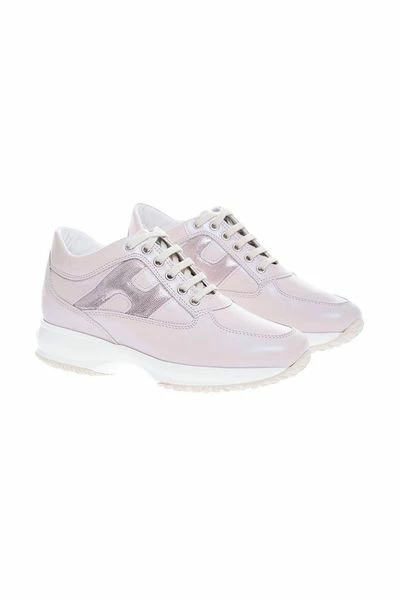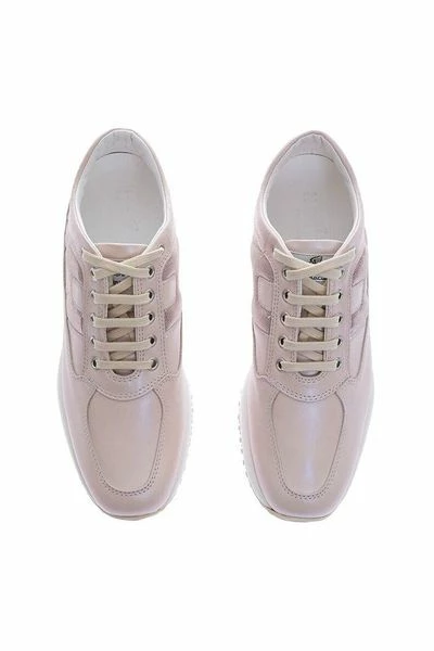 Damesschoenen Collection Beige / roze Interactive kalfsledertennisschoenen door Hogan met doorgestikt uitsnijdingen en reliëf stroomden H. De zool is van rubber en de hiel maatregelen 5cm.