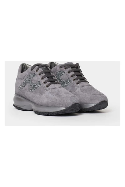 Hogan interactieve sneaker vrouw met bovenste suède suède. H lateraal in Glitter. 1,2 cm Pull-Out Fussbett. Rubberen zool. Totale hoogte 5,7 cm.