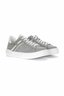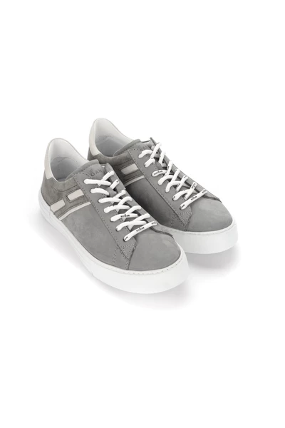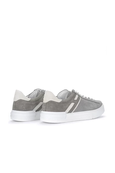 Hogan rebelleer grijs leer en suède sneaker met witte details. Intern traagschuim gemaakt in Italië zool
