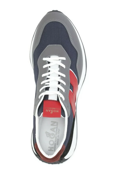 Hogan Sneakers rood – Multicolor Hogan Leather and Tech Fabric Sneakers For Man – Round Toe – Tech Fabric Inserts – Gladde lederen zijde H – Logoed tong – Traagschuim Fussbett (8 mm) – Leters bevestigen