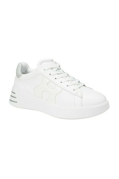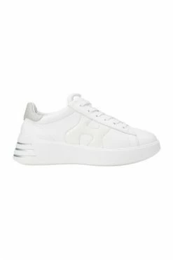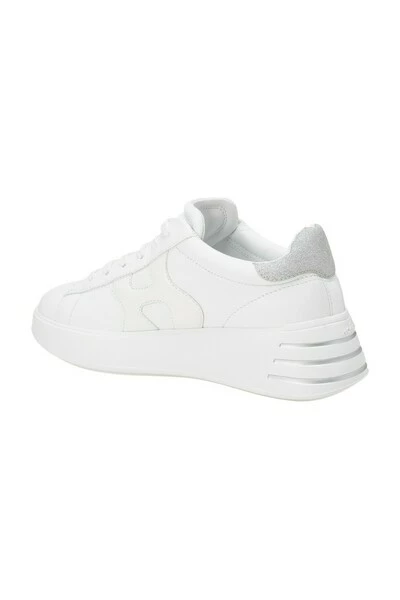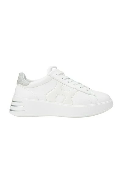 Hogan sneakers witte sneakers met nappa lederen bovenste en patentleren zijde H. glitterstofdetails en traagschuim voetbed. Rubberen zool. Gemaakt in Italië.