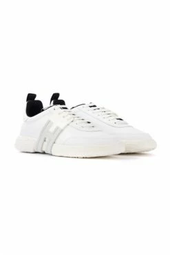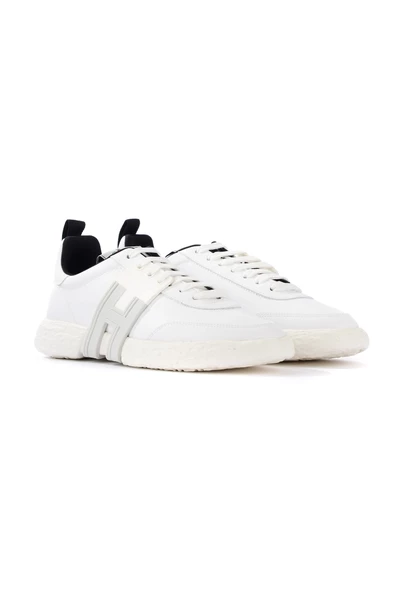 Hogan -3R witte lederen sneaker. H in grijs rubber detail in gros graan op de achterkant in Eva Sustainable Sole+ Fabric voering
