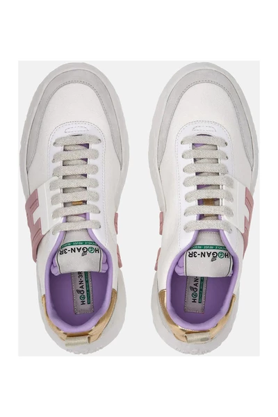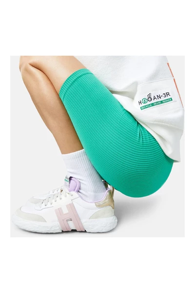 Hogan Sneakers White Recycle – hergebruik – verminderen. De nieuwe Hogan-3R sneakers zijn geïnspireerd door de natuur, zowel in termen van duurzaamheid als esthetiek. De ultralichte buitenzool, die herstelde materialen omvat, heeft een porositeit die doet denken aan rots en wordt gekenmerkt door de circulariteit van het Maxi Rubber H -logo. Het bovenwerk van canvas is het resultaat van een proces met gerecyclede vezels. De suède -inzetstukken zijn gebruind om het gebruik van chemicaliën te beperken. Details aan de achterkant zijn gemaakt van een innovatief materiaal dat ongebruikt leer en synthetische vezels combineert. Inbegrepen gerecycled katoenen canvas boodschappentas inbegrepen