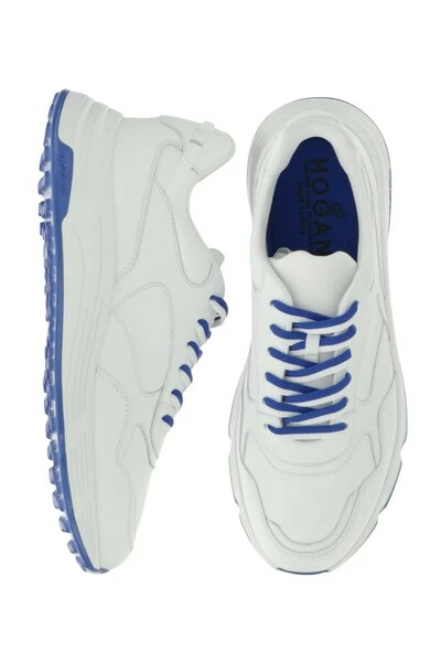 Wit glad lederen trainer Hogan -logo in reliëf op het zijgeheugenschuim voetbed Rubberen zool Wit, blauw gemaakt in Italië Samenstelling: 100% lederen wit glad lederen trainer Hogan -logo reliëf op het zijgeheugenschuim Rubberzol Wit, blauw gemaakt in Italië Compositie: 100 % leer