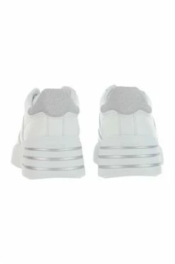 Sneakers gemaakt van nappa lederen patent lederen zijde h veter voorste glitterstofdetails Memine schuim Insool Rubberen buitenzool Hoogte 5 cm Wit, zilver gemaakt in Italië Samenstelling: 100% Nappa lederen sneakers gemaakt van nappa lederen patent lederen zijde h vace-up voor glitter stofdetails geheugenschuim binnenzool rubber buitenzool hoogte 5 cm wit, zilver gemaakt in Italië Samenstelling: 100% nappa leer