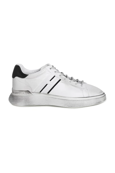 Hogan Sneakers White Beschrijving – Gemaakt in Italië – Leer bovenwerk – Gebruikte look afwerking – gehamerde lederen details – H aan de zijkant – Traagschuim voetbed – Rubberen zool – Kleur: Wit