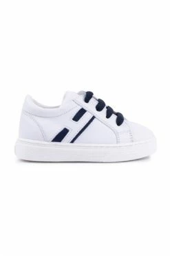 Hogan platte schoenen Wit glad lederen bovenste inzetstukken en zijde H in suede zijkant zip rubberen cassette zool stof inbegrepen