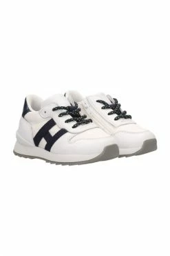 Hogan – Bovenwerk van suède – Inzetstukken van technische stof met ruitjespatroon – H aan de zijkant in grosgrain – Ritssluiting – Rubberen zool