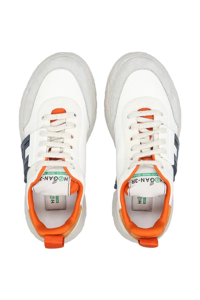 Hogan Sneakers – Canvas bovenste – suède inzetstukken – rubber schuine h – gereconstitueerde lederen details aan de achterkant – Custom Grosgrain Loop – Airtex Gededed Footbed – Extra Light Eva Sole – gerecycled katoenzak inbegrepen