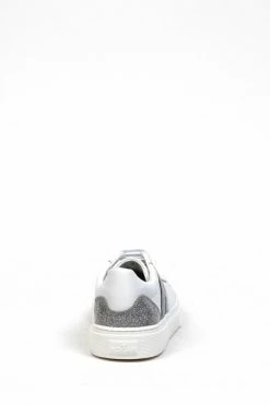 Sneaker – Upper in wit leer en zilver – Witte rubberen zool Banda naar de andere kant met logo Silver