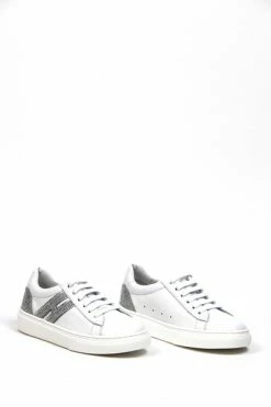 Sneaker – Upper in wit leer en zilver – Witte rubberen zool Banda naar de andere kant met logo Silver