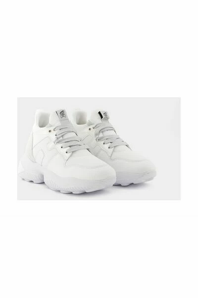 Hiel: 5,5 cm. Platform: letter H gesneden aan de zijkant. Kleur: Blanc – Bianco. Hoofdmateriaal: stof en leer. Sole: Rubber. Voering: leer. Sluiting: topvetjes. Toe vorm: rond. Fit: True to Size – Grootte: Europees.