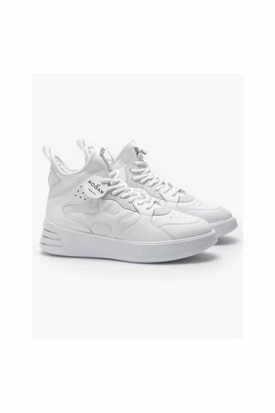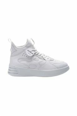 Collection Women`s Shoes Baksets White Rising – Rebel – in Leather and Neoprene, van Hogan for Women. De zool is in witte kauwgom en biedt een goede demping, terwijl de binnenzool in vormgeheugen is waardoor het lopen zeer comfortabel wordt.