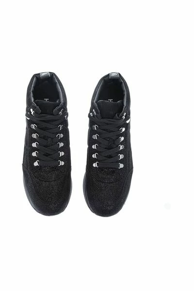 Collectie Schoenen AH19 / 20 Laarzen zwart stijgende 222 Hogan Stijl laarzen met zilveren pailletten en een veter van een wandelschoen. De Neus is in zwart in neuslengte is 3 cm.