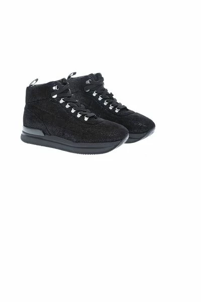 Hogan Snowboots 222 High Boots In Leather With Sequins Black