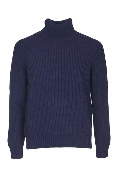 Turtleneck -trui in blauw met geribbeld vakmanschap en Hogan -logo toegepast op de linker mouw. Normale pasvorm. Samenstelling: 100% maagdelijke wol. Gemaakt in Italië.