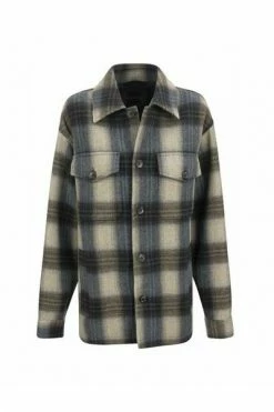 Uni dubbele wollen mix stoffe shirt jas met cheques motief. Uitgerust met aangepaste knoopbevestiging, zakken en manchetten, is het een veelzijdig casual kledingstuk dat een dynamische en informele stijl interpreteert met grunge-stijl herinneringen.